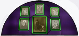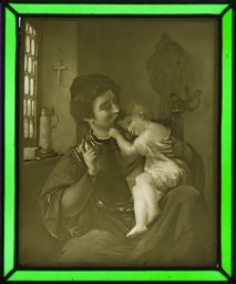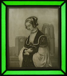 Les lithophanies inscrites dans ces vitraux colorés sont pour certaines des reproductions de tableaux très connus mais la majorité d'entre elles illustrent des scènes de genre ou des portraits.