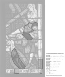 Schéma du vitrail de Sainte Hélène ressuscitant une morte avec la Vraie Croix (panneau droite)