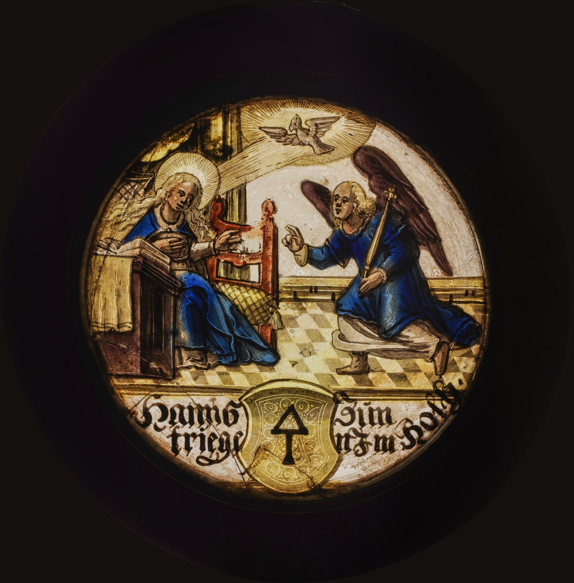 D’après les anciens inventaires, le vitrail proviendrait de Rarogne, en Valais. L’ancien hameau d’Holz mentionné dans l’inscription se situe actuellement au-dessus de la commune valaisanne d’Unterbäch, non loin de Rarogne. L’emplacement d’origine de ce médaillon représentant un sujet religieux pouvait être dans l’un des lieux de culte de la grande paroisse de Rarogne, formée de Bürchen, d’Ausserberg et d’Unterbäch jusqu’en 1554 (Riva, 2011). Parmi les édifices religieux bâtis aux XVIe et XVIIe siècles, plusieurs se dressent comme de potentiels emplacements d’origine du vitrail. L’église Saint-Romain de Rarogne a été bâtie au début du XVIe siècle, après la destruction de l’église médiévale en 1494 (Riva, 2011), la chapelle de la Sainte-Trinité d’Unterbäch est attestée dès 1558 et la chapelle de la Sainte-Famille d’Ausserberg vers 1680. La chapelle Saint-Barthélemy à Holz n’ayant été construite qu’au début du XVIIIe siècle (Zenhäusern, 2008), il n’est pas possible que le médaillon s’y soit à l’origine trouvé.