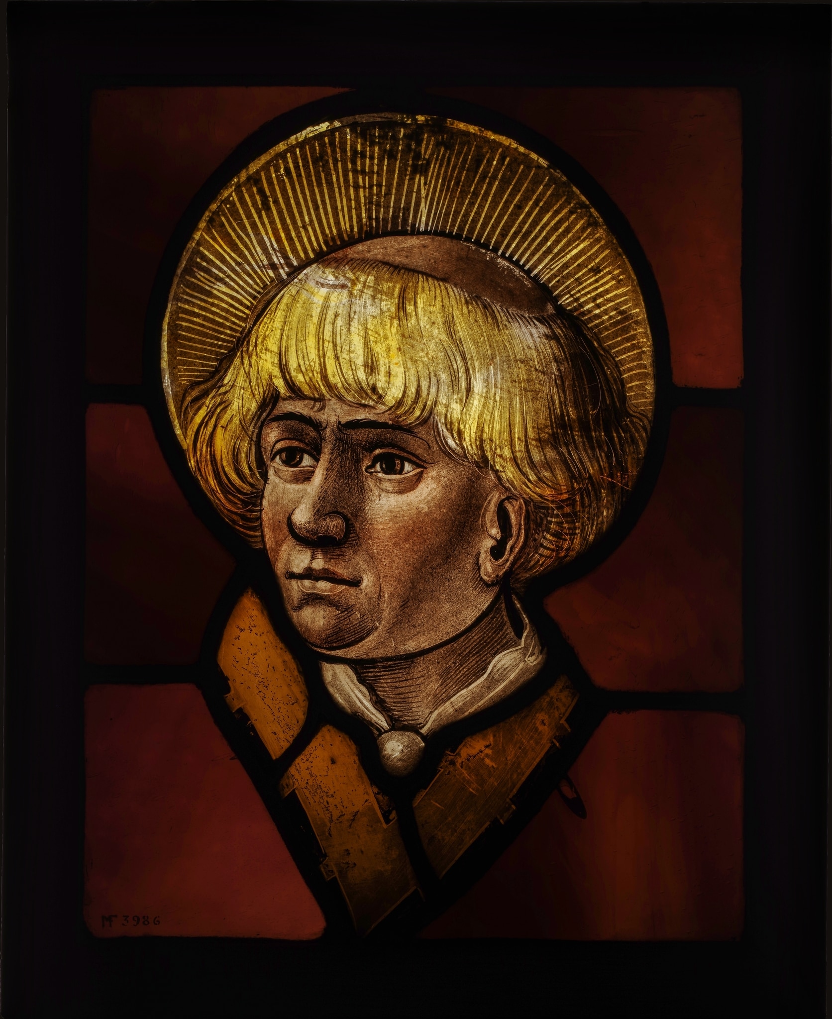 Le peintre verrier n’est pas identifié. Un fragment de tête de moine tonsuré et nimbé similaire au présent vitrail proviendrait de l’ancien monastère cistercien de Saint-Apern à Cologne (Lymant, 1982, p. 213, fig. 136). Daté vers 1525, le saint personnage a été identifié comme étant saint Benoît ou saint Bernard de Clairvaux, en raison du cycle consacré à saint Bernard des fenêtres du cloître de Saint-Apern (Lymant, 1982, p. 213). Les différences stylistiques entre les deux vitraux indiquent cependant qu’ils ne sont pas issus du même cycle.