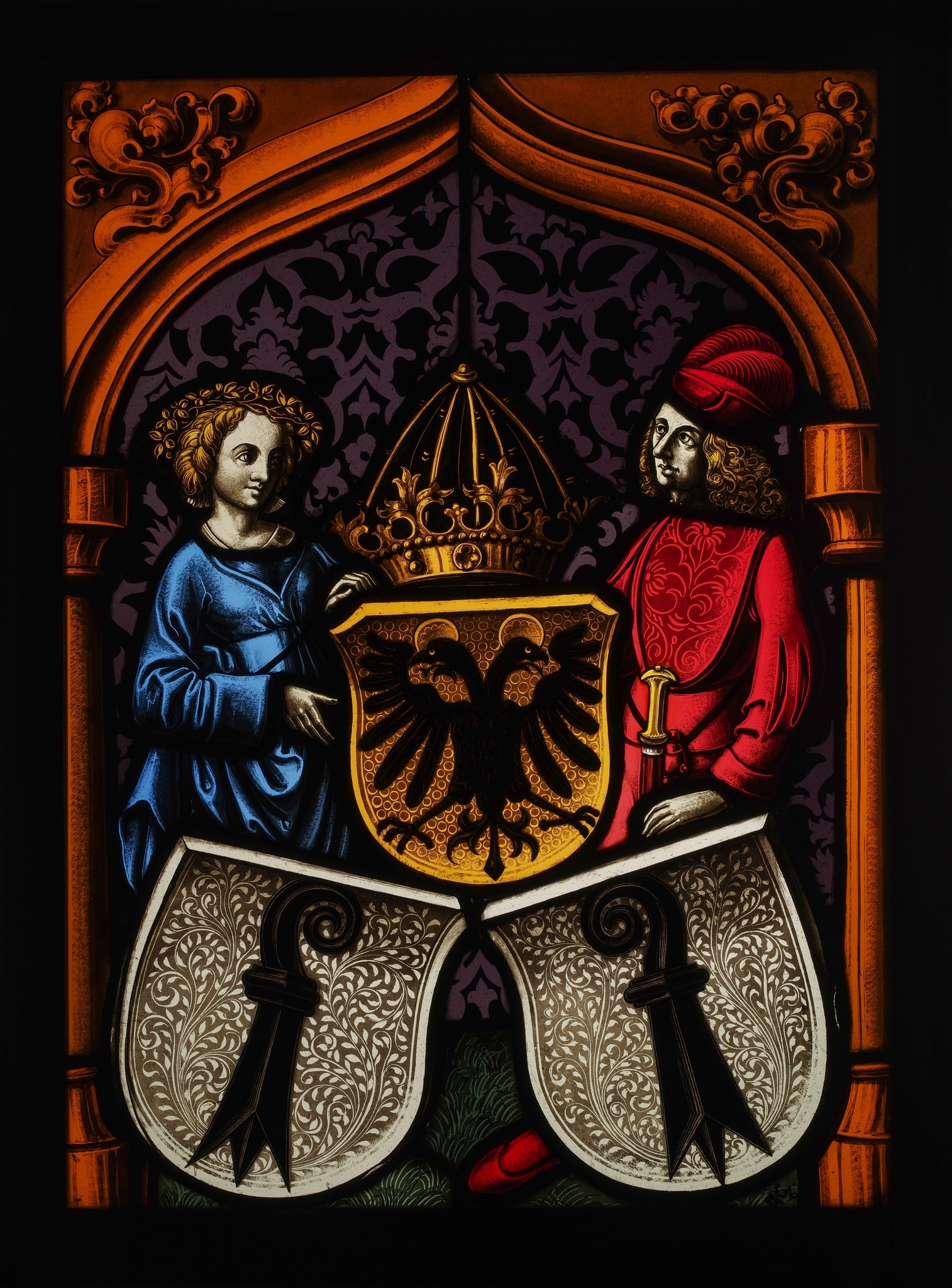 Armoiries du Saint Empire : d'or, à l'aigle bicéphale de sable, membrée, becquée et armée de gueules