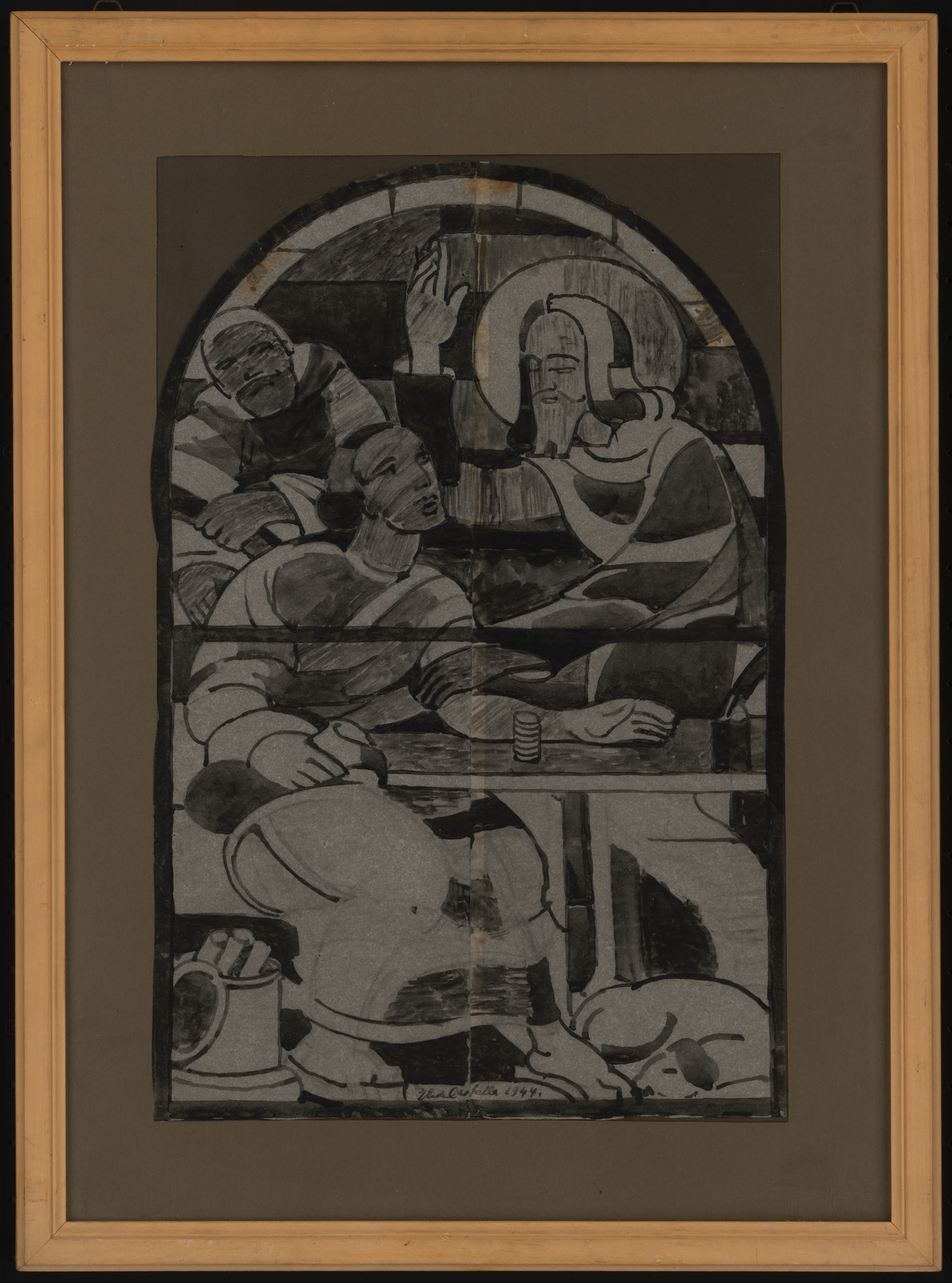 Etude de vitrail S. Matthieu (Eglise S.Pierre, Fribourg) / Vocation de S. Matthieu (au verso)