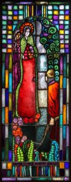 Cette esquisse est un travail préparatoire pour un vitrail consacré à sainte Élisabeth de Hongrie, réalisé en 1915 par l’artiste genevois Marcel Poncet (GSL_561). Il a été posé en 1941 dans la salle paroissiale attenante à la chapelle catholique d’Aubonne, où il se trouve encore actuellement. Ce vitrail se trouvait à l’origine dans la maison Maurer, espace utilisé comme lieu de culte par la communauté catholique d’Aubonne, avant d’être déplacé à son emplacement actuel lors la construction de la chapelle en 1939-1941 par les architectes François de Reynold et Albert Cingria (Lincio, 2002, p. 18).
