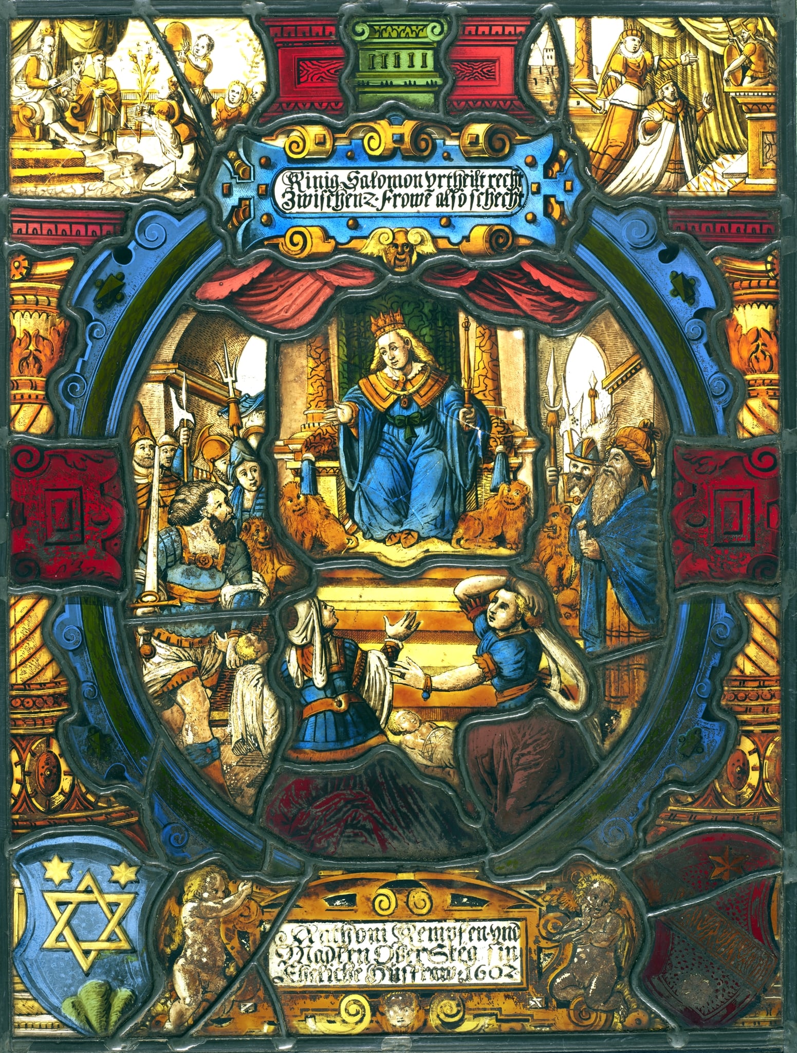 Kinig Salomon urtheilt recht / Zwischen 2 Frowē also schecht/ (cartouche above. King Solomon judges truly between two women sent [to him])