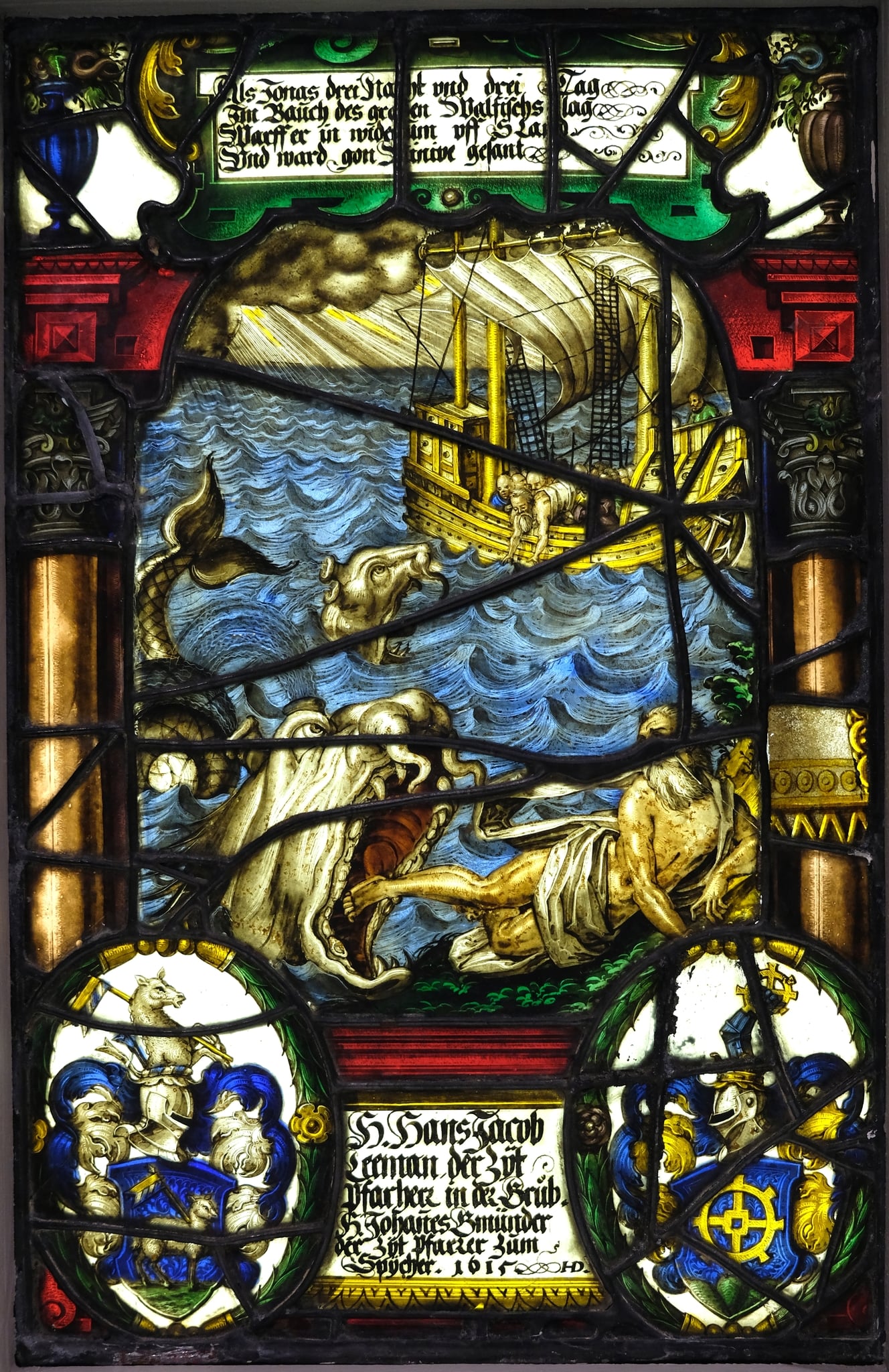 US_40: Heraldic Panel Hans Jakob Lehmann and Johannes Gmünder with Jonah and the Whale