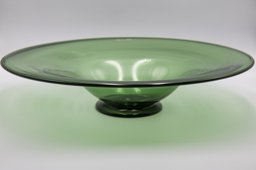 Ce modèle de coupe (134) fut créé à une période précoce de la Verrerie artistique (1930-1964). Les sources dont nous disposons sont des catalogues de la Verrerie de St-Prex, certains inédits, tels que les albums noirs munis de photographies de vases, vraisemblablement utilisés par les représentants de 1931 à 1935, où il est référencié comme coupe en verre vert, soit gravée à l’acide, soit unie. (Verreries de St-Prex, 1931). Ce modèle fait également partie de l’offre du premier catalogue de vente imprimé de 1935 (Verreries de St-Prex, 1935, 7), où il est présenté en verre vert.