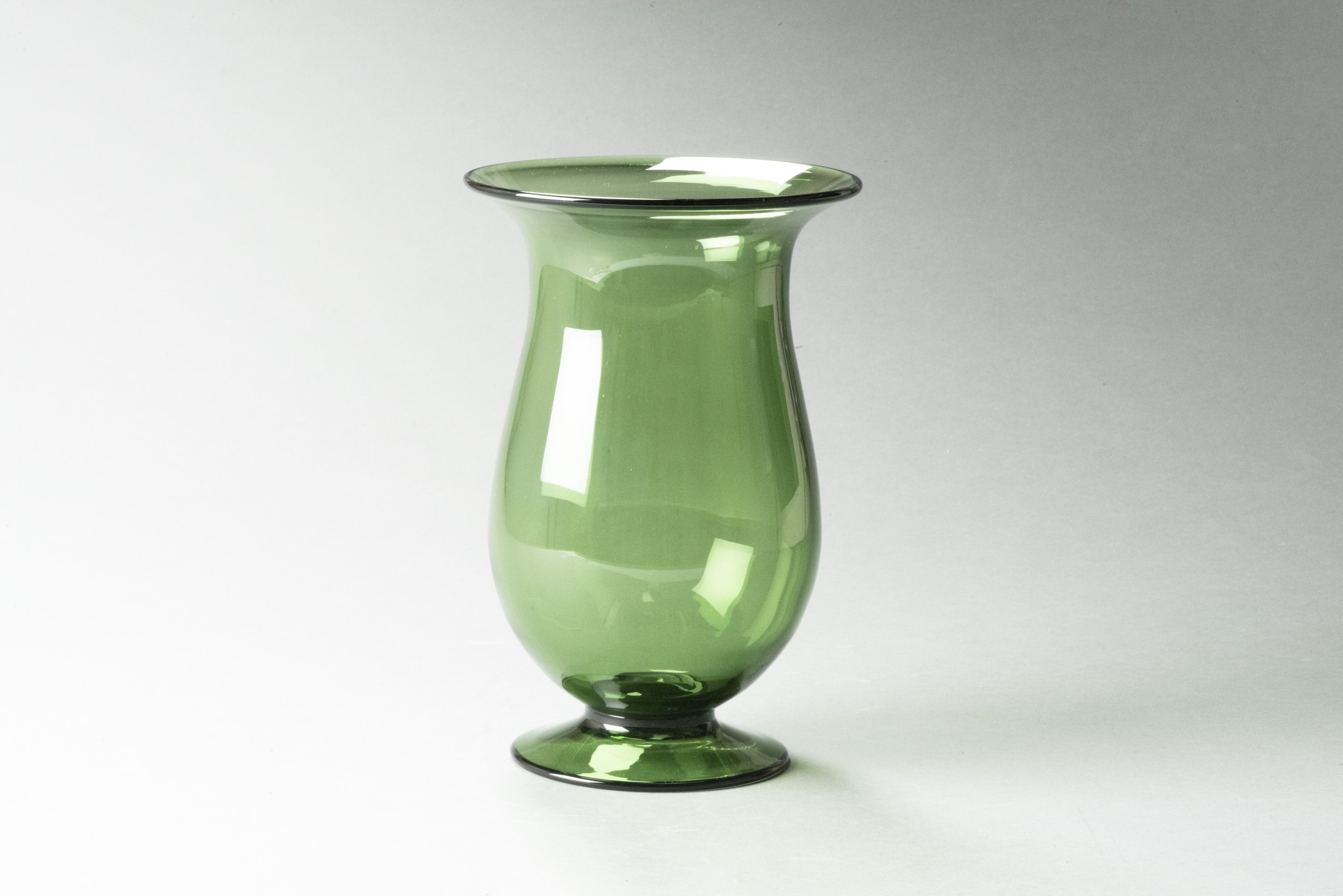 Verre vert soufflé en moule, pied appliqué; forme: panse balustre, lèvre évasée