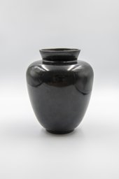 Ce modèle (196) de vase de la Verrerie artistique (1930-1964) a été commercialisé dès 1949. Les sources dont nous disposons sont des catalogues de la Verrerie de St-Prex, certains inédits. Il fait partie du "supplément" publié en 1949 (Verreries de St-Prex, 1949, 7), une offre disponible en verre vert, émaillé noir, rouge, bleu et or craquelé. Il figure enfin dans un répertoire non publié, qui, basé sur les numéros d’inventaire des catalogues de 1935 à 1960, dresse la liste de tous les modèles de la production artistique (Verreries de St-Prex, 1964, H 18). D’après les sources, ce modèle est ainsi mis en vente en 1949 et produit jusqu’en 1964. Dans la critique récente, il est reproduit chez Dreyfus (Dreyfus, 1981, 13 et 21). Au dépôt du Musée du Verrier, il existe aussi deux vases en argent craquelé et noir avec inscription : 9e GIRON DES CHANTEURS DE L'AUBONNE / ST-PREX / 1964.