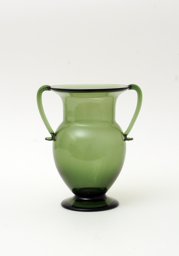 À Saint-Prex, le céramiste évoque également sa collaboration avec un verrier italien, formé à Murano (Beaujon, 1961, 75). Notre recherche s’oriente alors vers l’art verrier italien et plus particulièrement vénitien. Cette forme de vase appartient à la tradition antique. Au XXe siècle, c'est Vittorio Zecchin (1878-1947) qui, **durant son engagement comme directeur artistique des Vetri Soffiati Muranesi Cappellin Venini & C., de 1921 à 1925, crée des vases à anses aux formes harmonieuses et hiératiques à la fois (Barovier & Sonego, 2017, 187, no 1887). Ainsi, le céramiste Bonifas marie les aspects du design puriste au savoir-faire verrier contemporain.