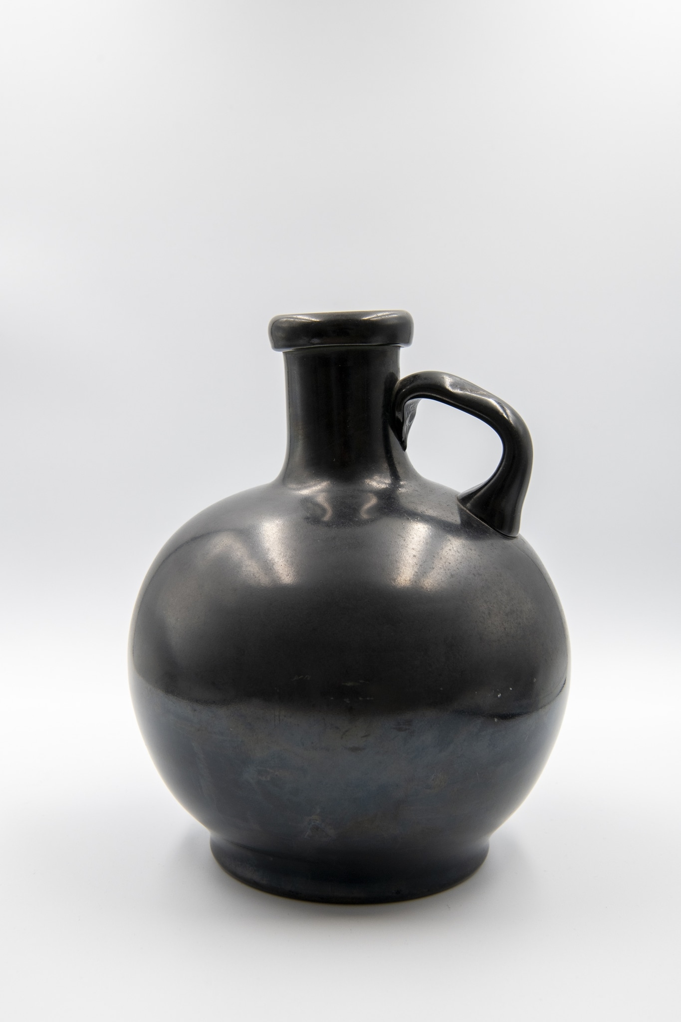 Cruche noire, lèvre retournée et anse verte