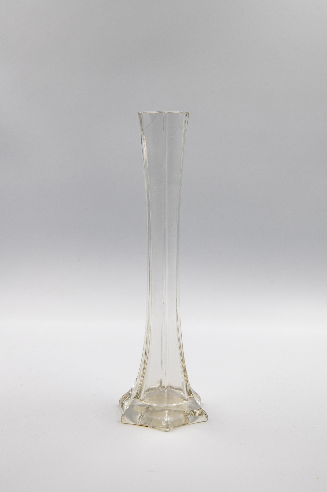 Vase soliflore allongé à six côtés en verre incolore