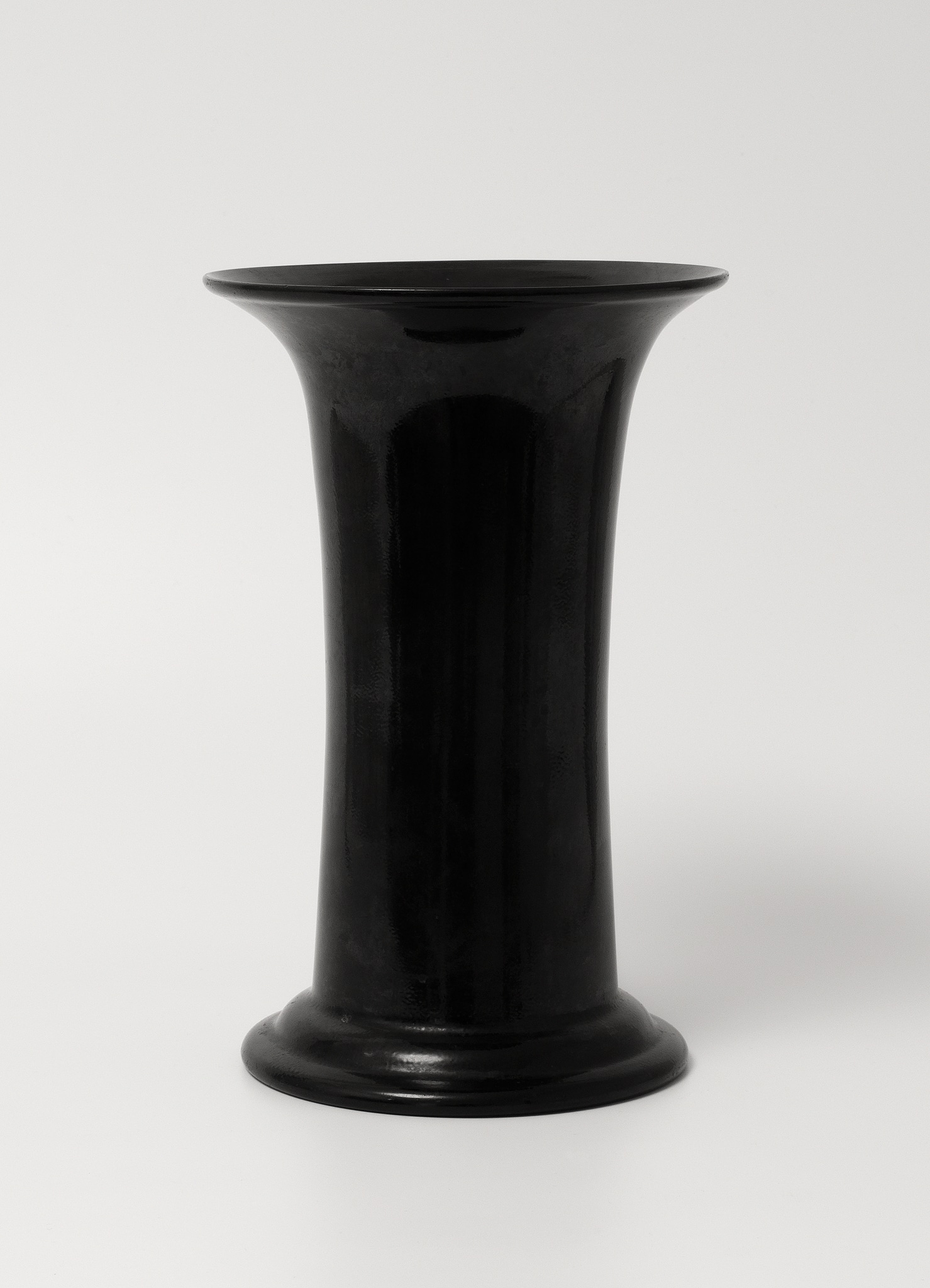 Sans le timbre doré des premières années ou d'autres particularités, rien ne suggère que le vase présenté ici ait été produit avant 1935. En revanche, le revêtement émaillé noir faisait déjà partie du catalogue en usage de 1931 à 1935. Il évoque les fameuses terres lustrées noires du céramiste Paul Ami Bonifas.