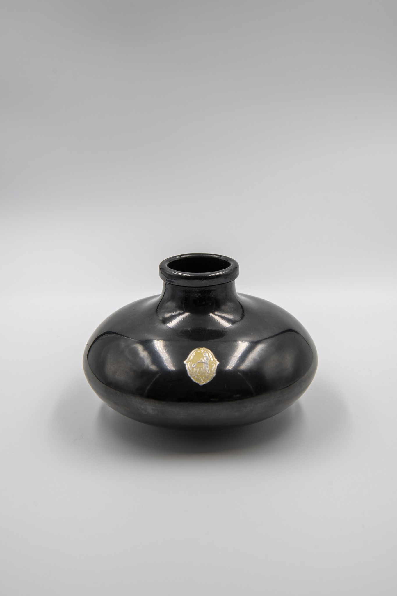 Sans le timbre des premières années, le vase présenté ici a été réalisé après 1935. Le revêtement noir, quand à lui, était déjà en usage de 1931 à 1935. Il évoque les fameuses terres lustrées noires du céramiste Paul Ami Bonifas. Avec la disparission du modèle dans la liste de prix de 1951, notre vase est daté entre 1935 et 1951.